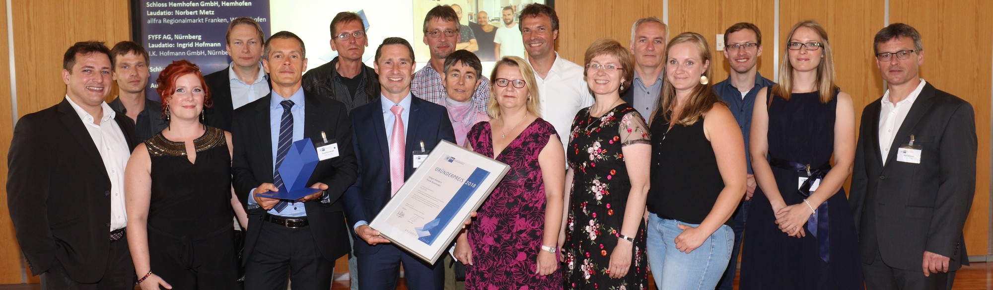 該獎項由紐倫堡工商會(huì )于1996年在中弗蘭肯行政區創(chuàng )建,并賦予得獎?wù)?0,000歐元的獎金。2018年7月4日,在中弗蘭肯行政區IHK學(xué)院舉辦的頒獎典禮上,Leonhard KurzStiftung&Co.KG董事長(cháng)Peter Kurz在140多位受邀嘉賓面前,對Frank Brunnecker和Holger Aldebert表示了贊賞。最重要的是,評委會(huì )贊揚了兩位董事總經(jīng)理對其創(chuàng )新解決方案,客戶(hù)導向性和個(gè)性化方法的理念。